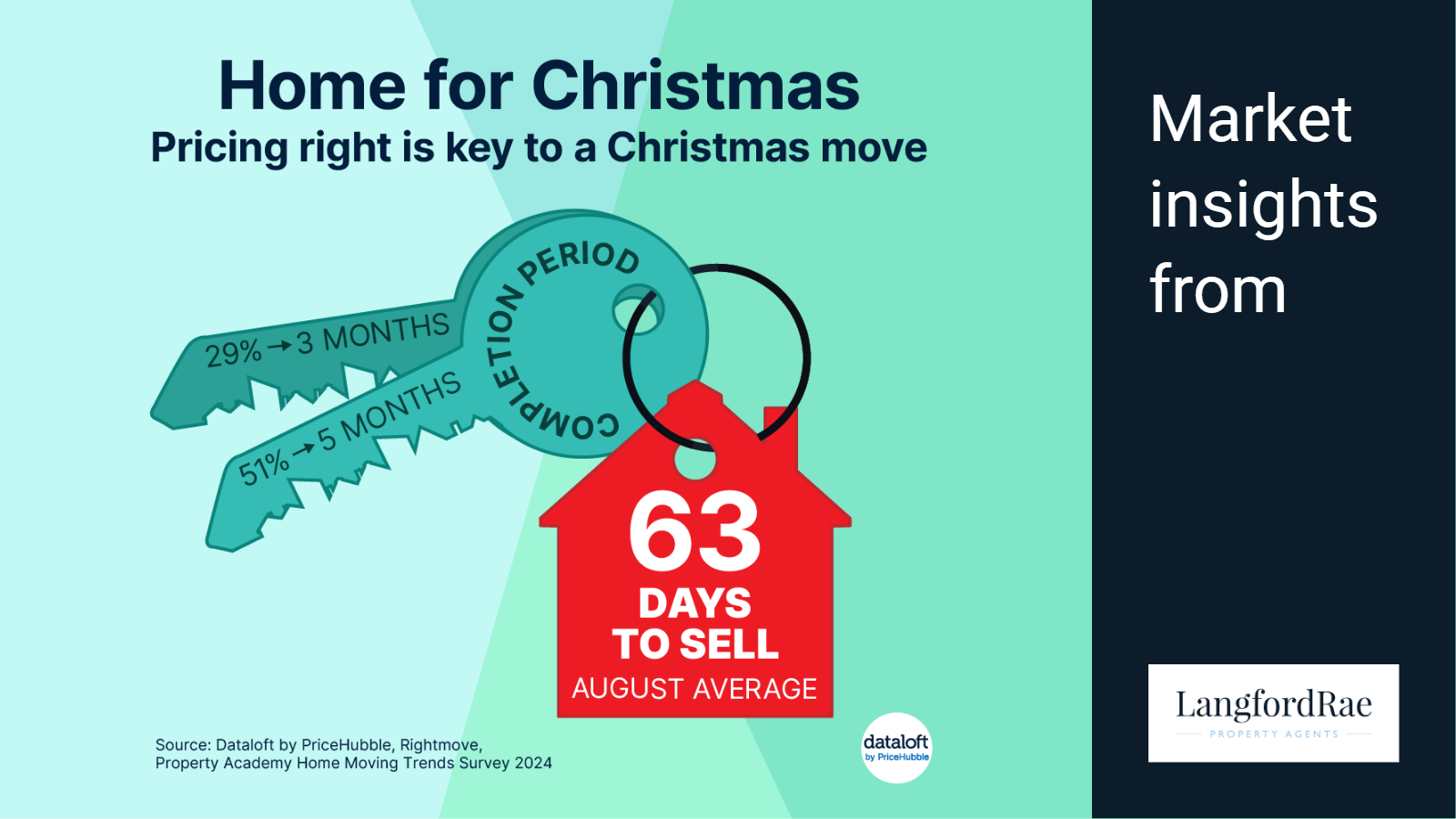According to the latest data, it currently takes an average of 63 days to secure a buyer, compared with 60 days at the same point last year. That takes us to early December, which makes it clear: if you want to be moved by the holiday period, your property needs to attract a serious buyer almost immediately. Once an offer is agreed, the legal process begins, and with completion typically taking four to five months, speed and cooperation become absolutely crucial.